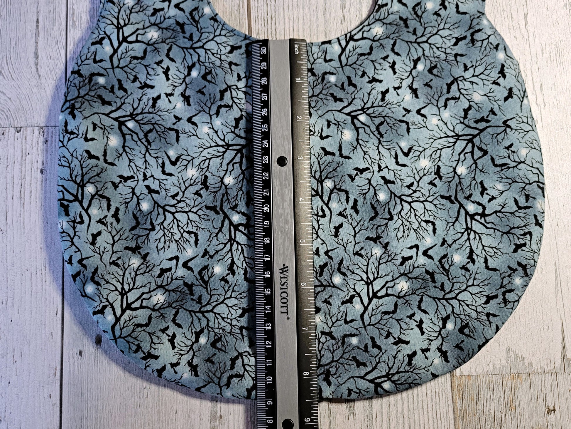 The bag, laying flat, is approximately 12 inches wide and 8.75 inches from the bottom to the top (not including the straps). The long strap is approximately 7 inches long.