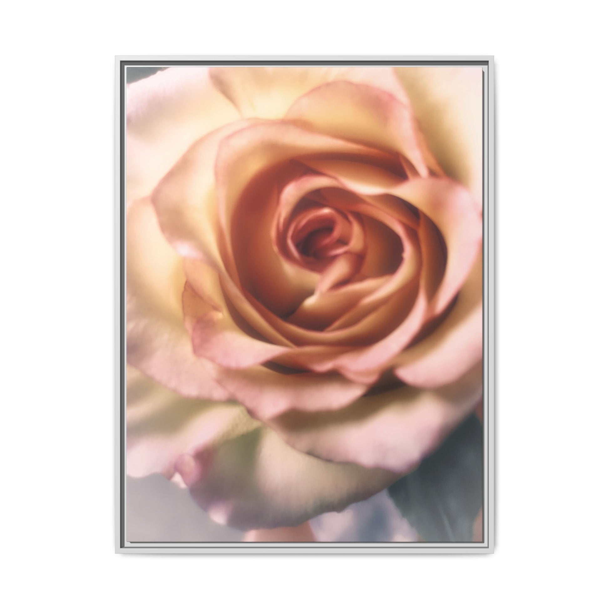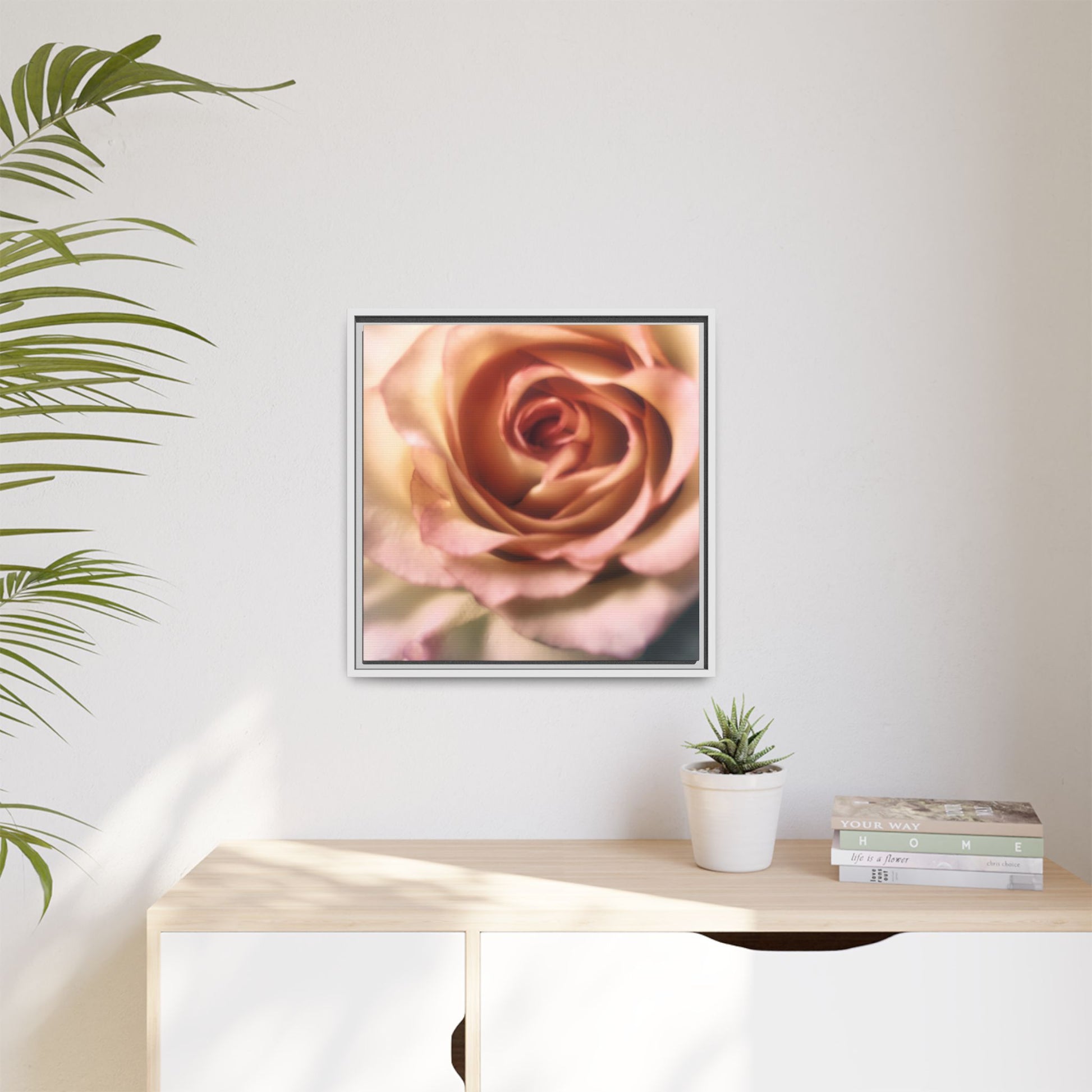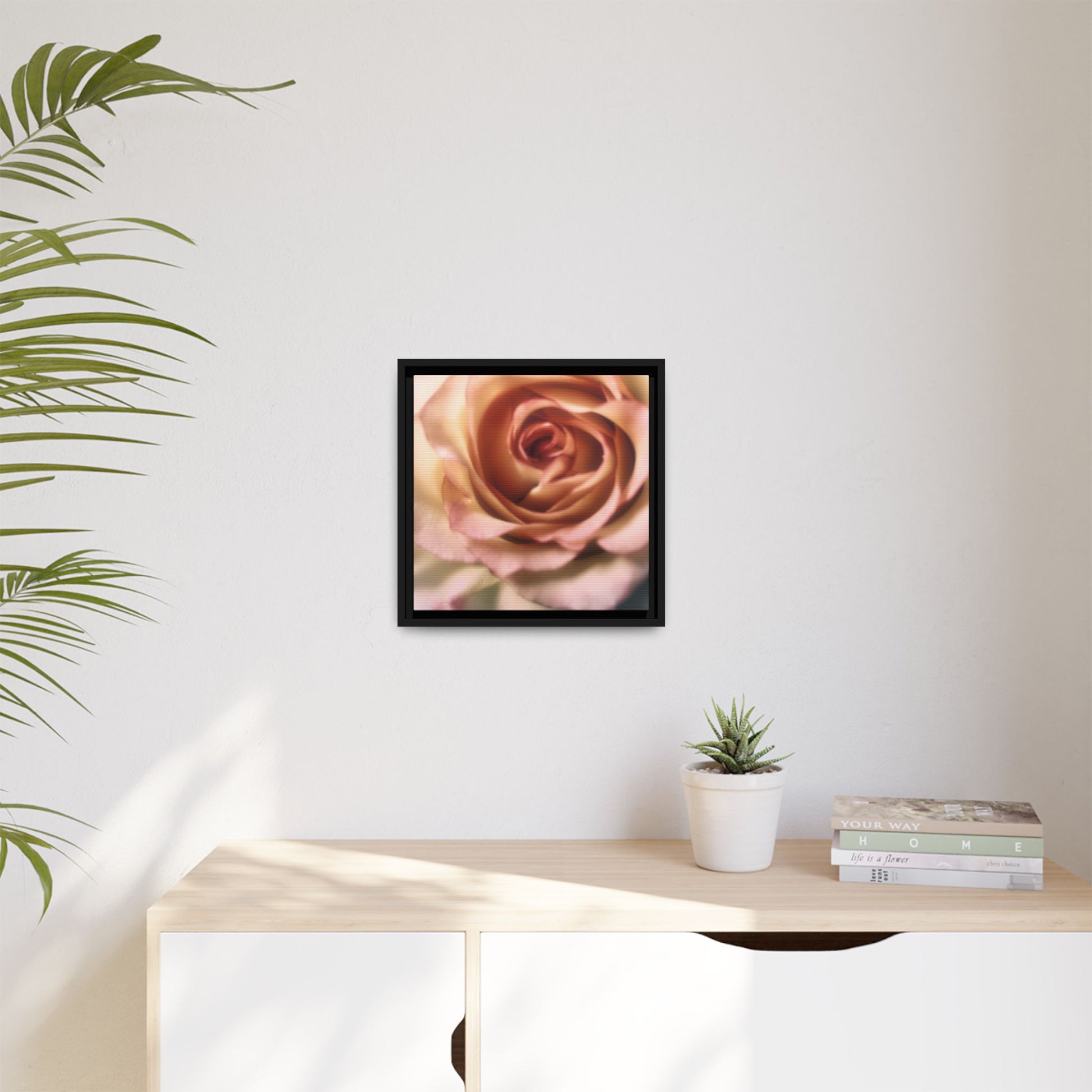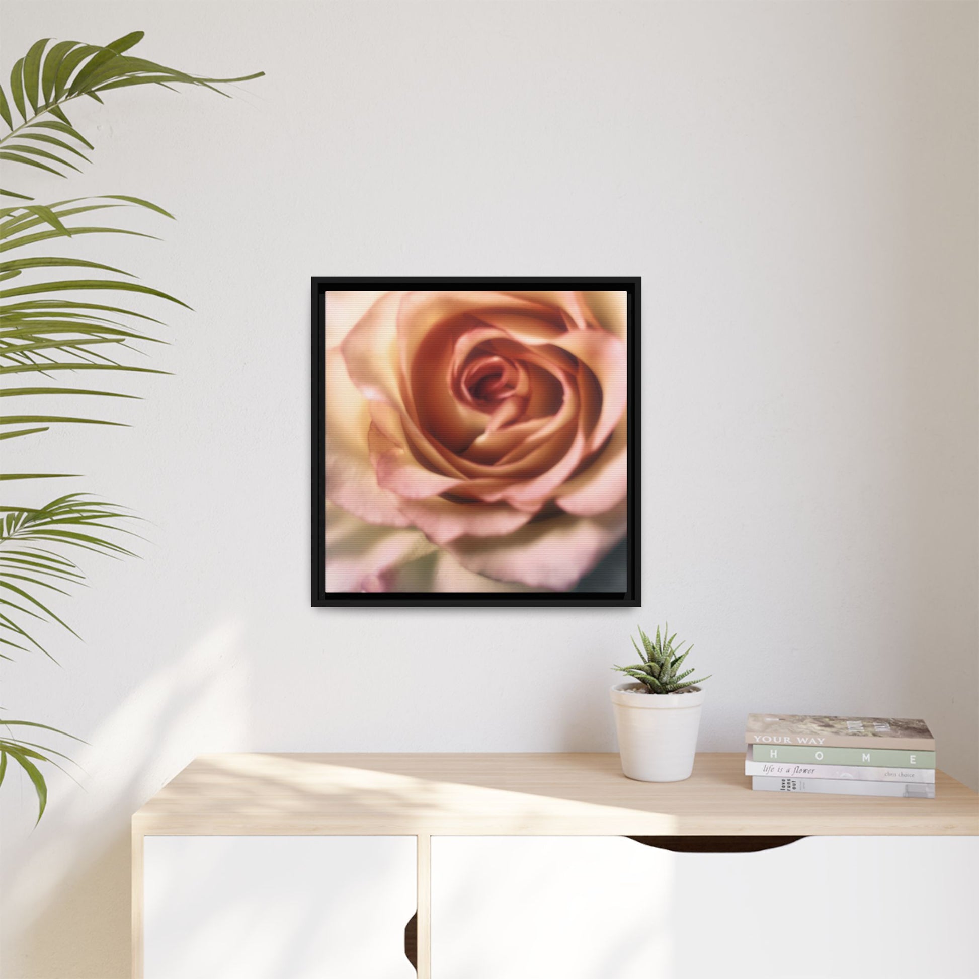 Add a touch of soft elegance to your space with our pink rose framed canvas.