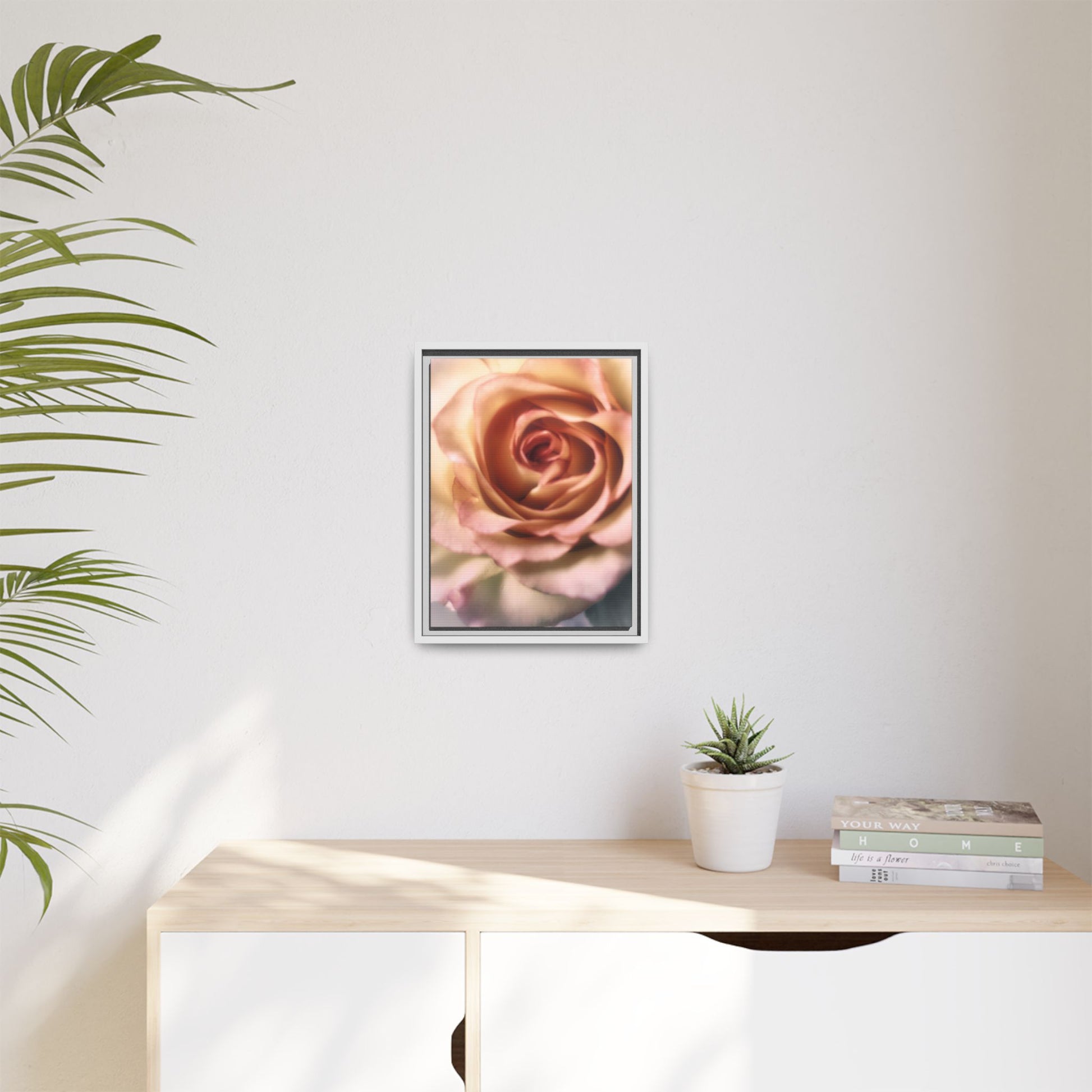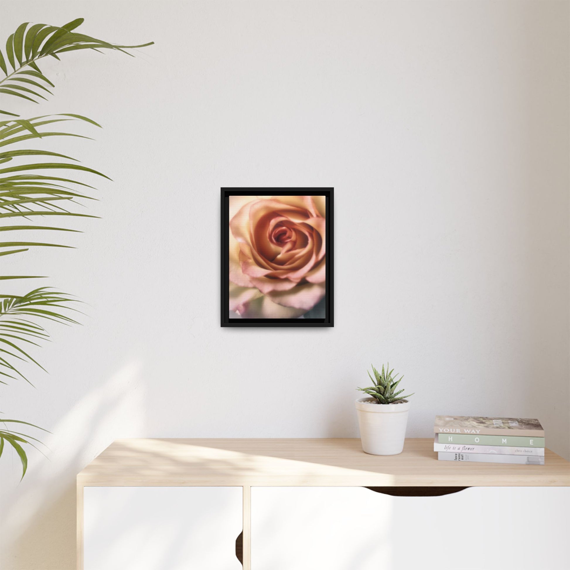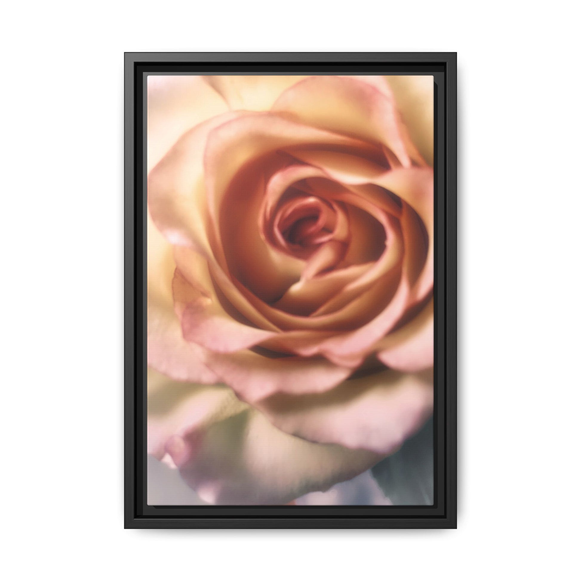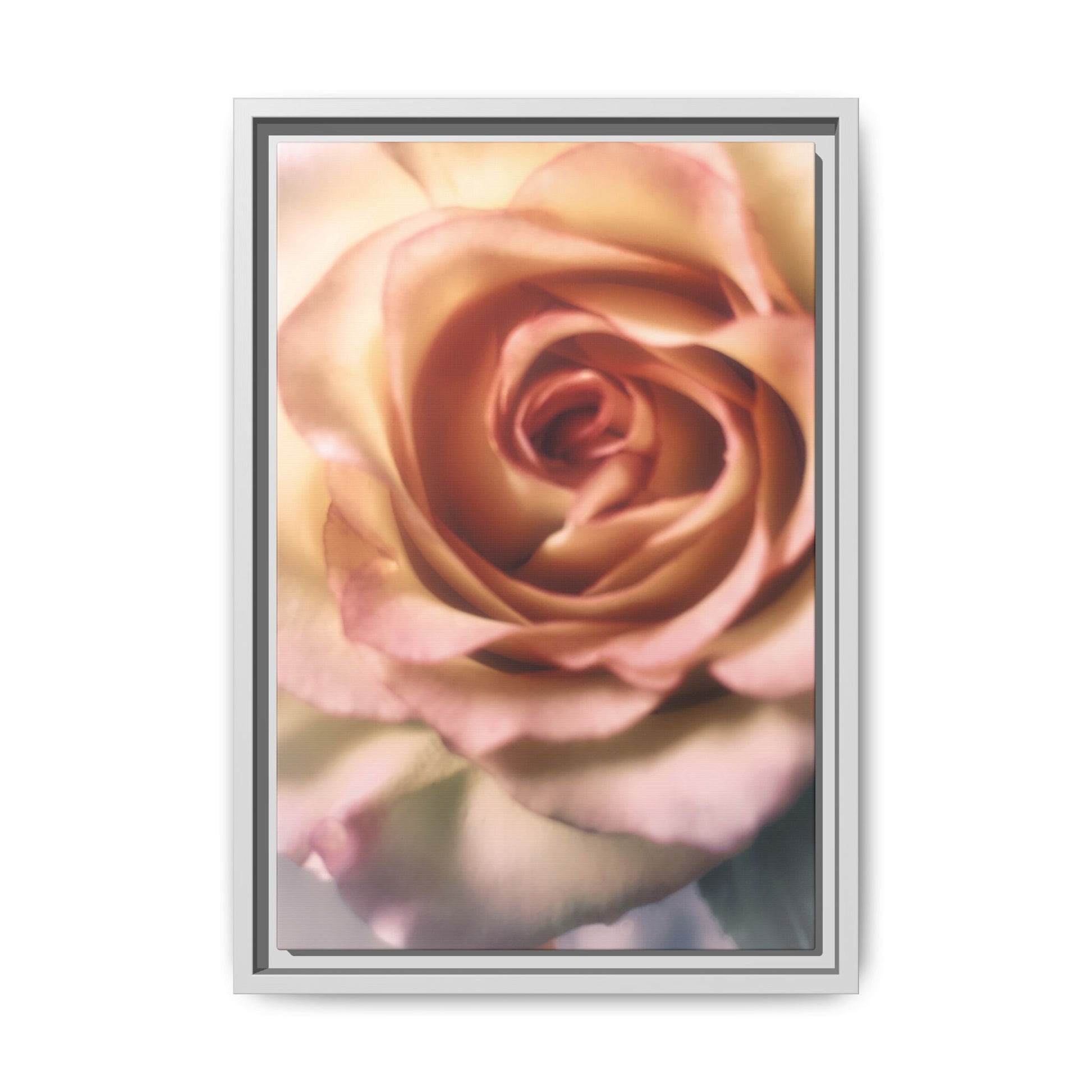 Add a touch of soft elegance to your space with our pink rose framed canvas.
